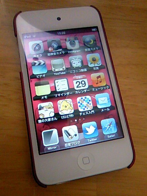 ご覧の通り、白のiPod touchに赤のケースです。私の好み全開です。
